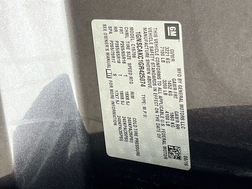 2nd Row 60/40 Split-Folding Manual Bench, 3rd Row Manual 60/40 Split-Folding Fold Flat Bench, 4-Wheel Antilock Disc Brakes, Black Assist Steps, Driver Inboard & Front Passenger Airbags, Electronic Cruise Control w/Set & Resume Speed, Enhanced Driver Alert Package, Enhanced Driver Instrument Information Display, Extended-Range Remote Keyless Entry, Leather-Wrapped Steering Wheel, Power-Adjustable Accelerator & Brake Pedals, Preferred Equipment Group 1LS, Premium audio system: Chevrolet MyLink, Premium Smooth Ride Suspension Package, Rear air conditioning, Rear Park Assist w/Audible Warning, Roof-Mounted Luggage Rack Side Rails, SiriusXM Satellite Radio.