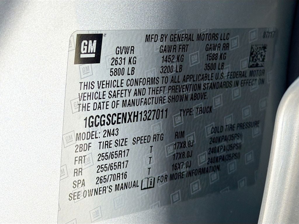 Protect this vehicle from unwanted accidents with a cutting edge backup camera system. This Chevrolet Colorado offers Apple CarPlay for seamless connectivity. This unit features a hands-free Bluetooth® phone system. This 2017 Chevrolet Colorado gleams with an elegant silver clear coated finish. Enjoy the incredible handling with the rear wheel drive on the Chevrolet Colorado. Keep safely connected while in this unit with OnStar. You may enjoy services like Automatic Crash Response, Navigation, Roadside Assistance and Hands-Free Calling. Maintaining a stable interior temperature in this small pickup is easy with the climate control system. This unit has a V6, 3.6L high output engine. Enjoy the tried and true gasoline engine in this 2017 Chevrolet Colorado . Electronic Stability Control is one of many advanced safety features on the Chevrolet Colorado. This unit has an automatic transmission. Easily set your speed in the vehicle with a state of the art cruise control system. Increase or decrease velocity with the touch of a button.