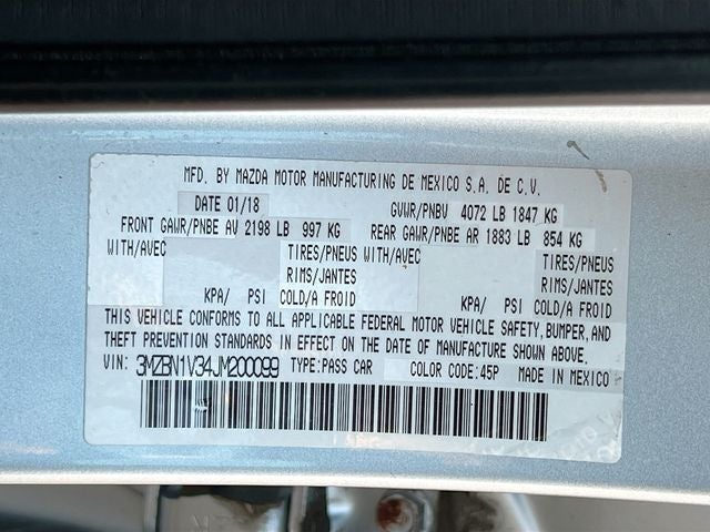 - Vehicle Name: Mazda Mazda3 4-Door