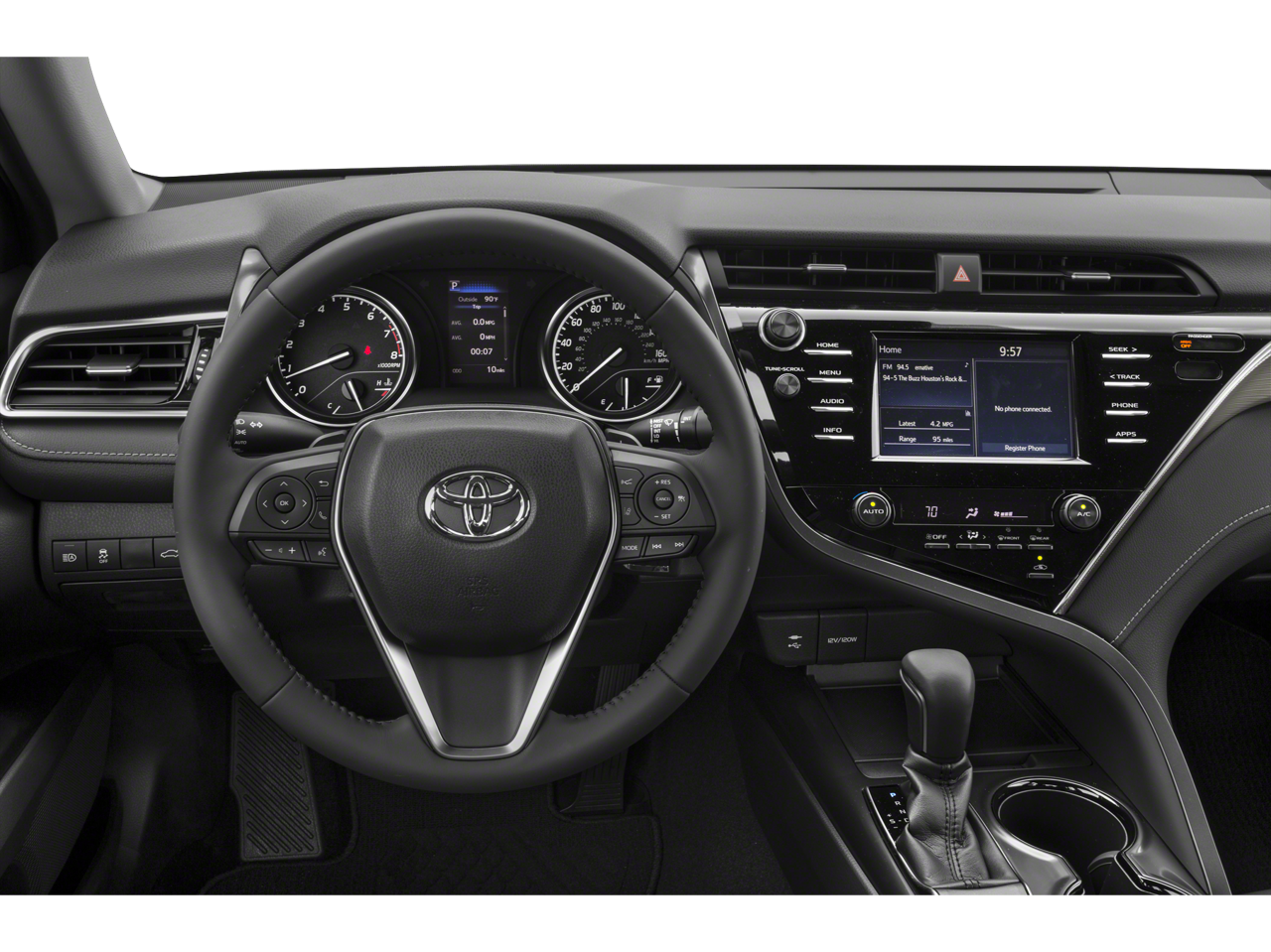 Step inside a cockpit designed for the driver. The interior features comfortable sport front seats and a leather-trimmed steering wheel with paddle shifters for manual control when you want it. Stay connected with the standard Apple CarPlay compatibility and the Entune 3.0 Audio System with a customizable display, putting your music, navigation, and messages easily within reach.