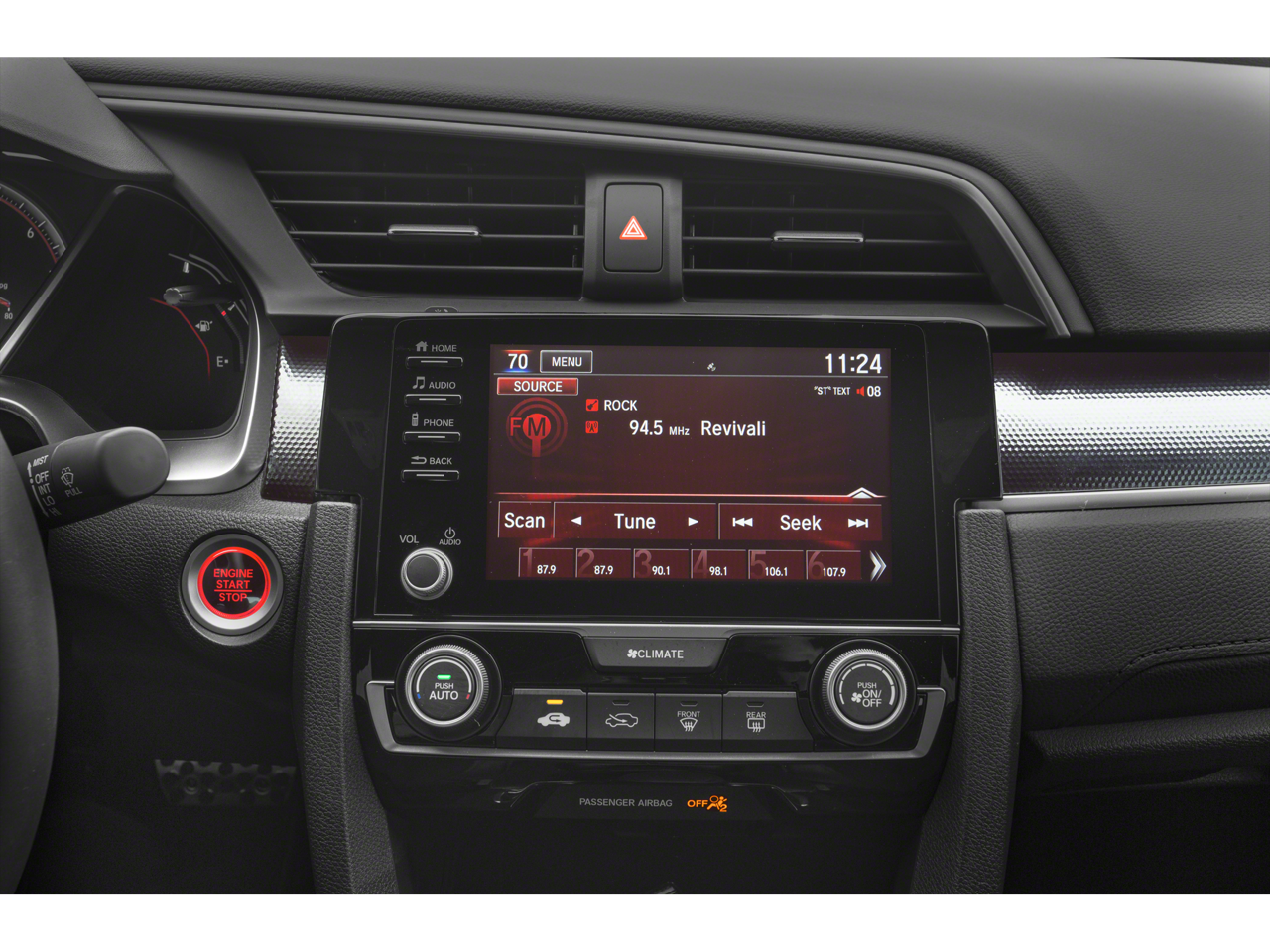 - Radio: 180-Watt AM/FM Audio System -inc: 8 speakers, 7-inch display w/high-resolution electrostatic touch-screen, knob and hard keys for primary controls, customizable feature settings, Bluetooth® HandsFreeLink, Bluetooth® streaming audio, radio data system (RDS), speed-sensitive volume compensation (SVC), 1.5-amp USB smartphone/audio interface in front console, 1.0-amp USB audio interface port in center console, HondaLink, Apple CarPlay integration, Android Auto integration, SMS text message function and illuminated steering wheel-mounted controls
