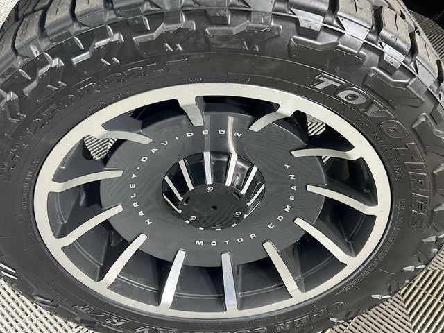 Dominating Stance & Custom Suspension: This is a lifted beast, featuring a BDS Suspension designed with exclusively tuned FOX Performance Shocks. Riding on massive 22-inch Harley-Davidson branded Fat Boy style aluminum wheels and all-terrain tires, this truck is ready to conquer any landscape with an aggressive, elevated stance.