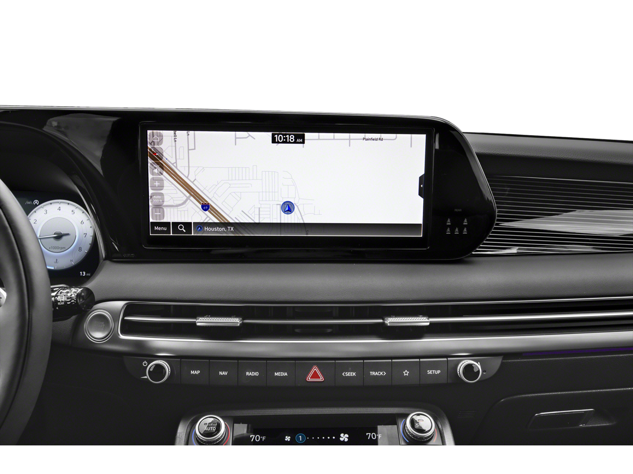 Stay connected and protected with Hyundai's most advanced suite of features. The cockpit features dual 12.3-inch digital displays for navigation and instrumentation, while Hyundai SmartSense acts as your digital co-pilot.